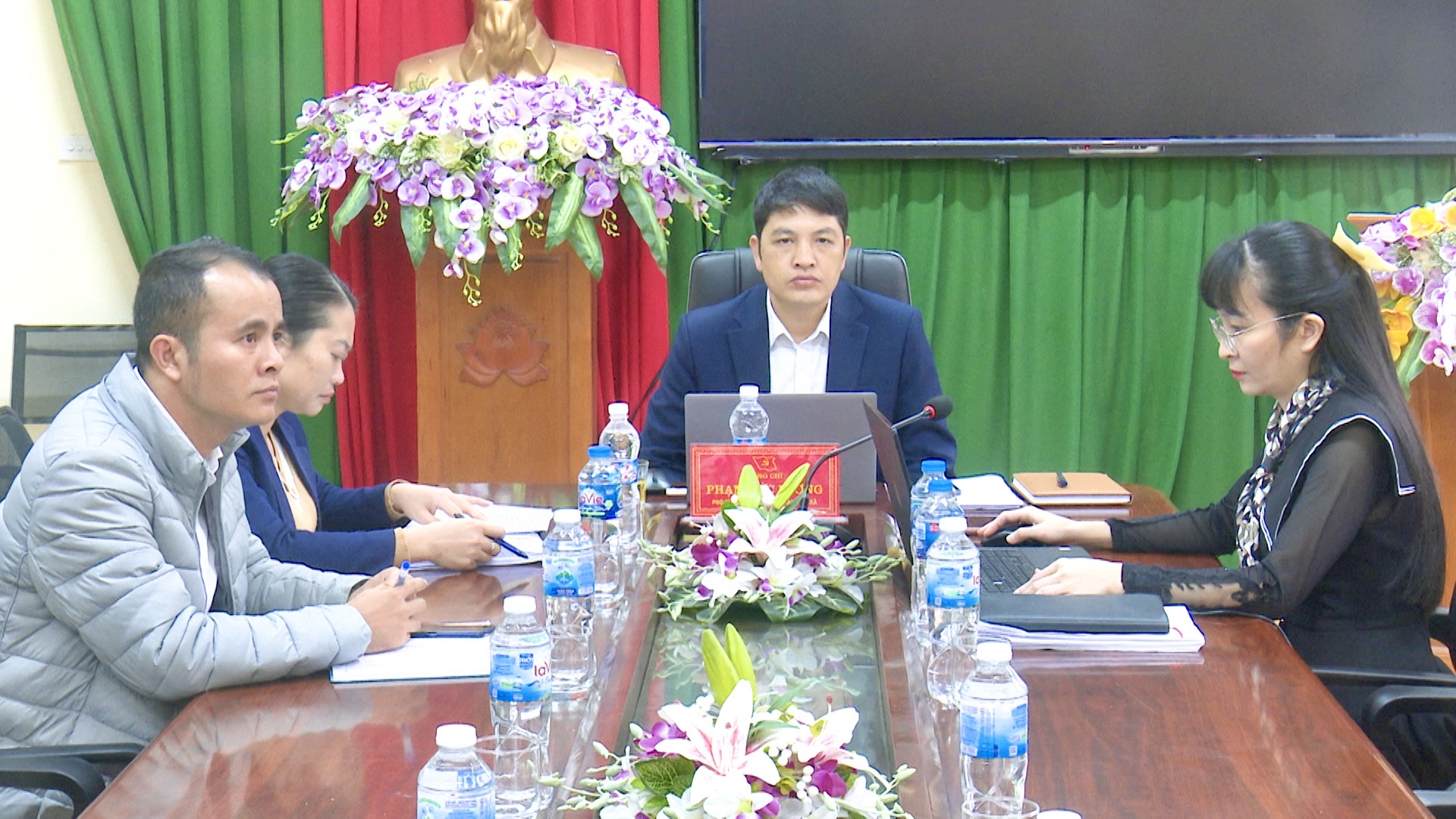 Đồng chí Hà Thị Tuyến - Bí thư Đảng ủy, Chủ tịch HĐND xã, đồng chí Vi Lệ Thủy - Phó Chủ tịch HĐND xã đồng chủ trì kỳ họp